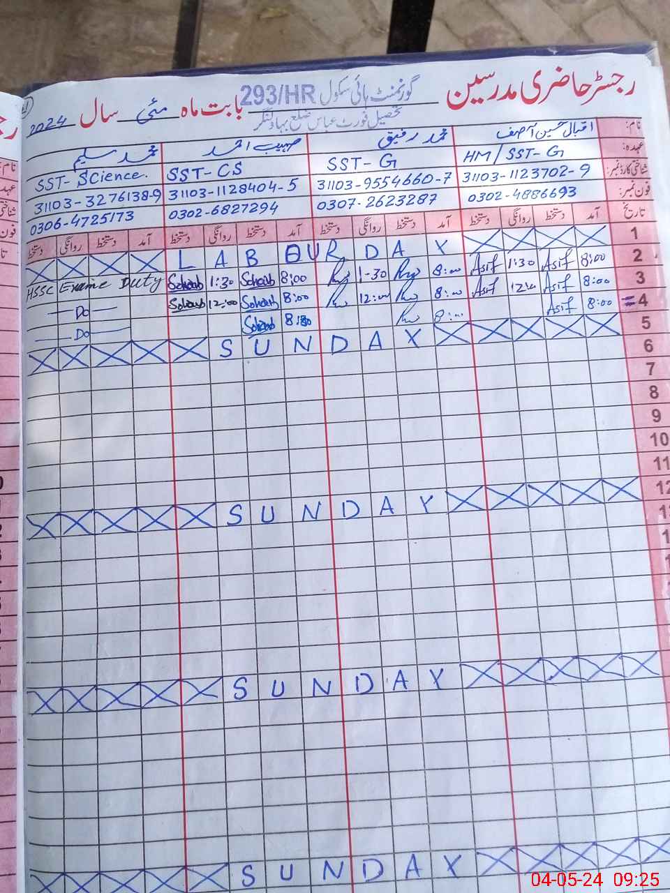 | 31**** | Mu**** Sa**** | SST | Regular | 0 | 0 | 0 | 0 | 0 | 0 | 0 | 0 | 0 | Exam Duty |