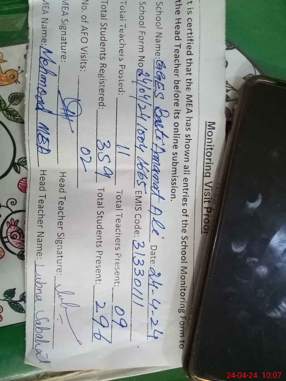 | EMIS Code: 31330111 | Name of School: GGES BASTI AMANAT ALI | |||