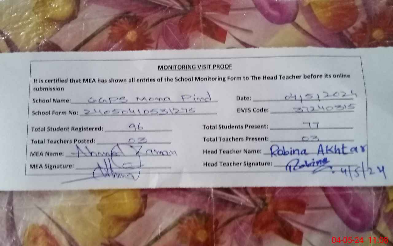 | EMIS Code: 37240315 | Name of School: GGPS MONA PIND | |||