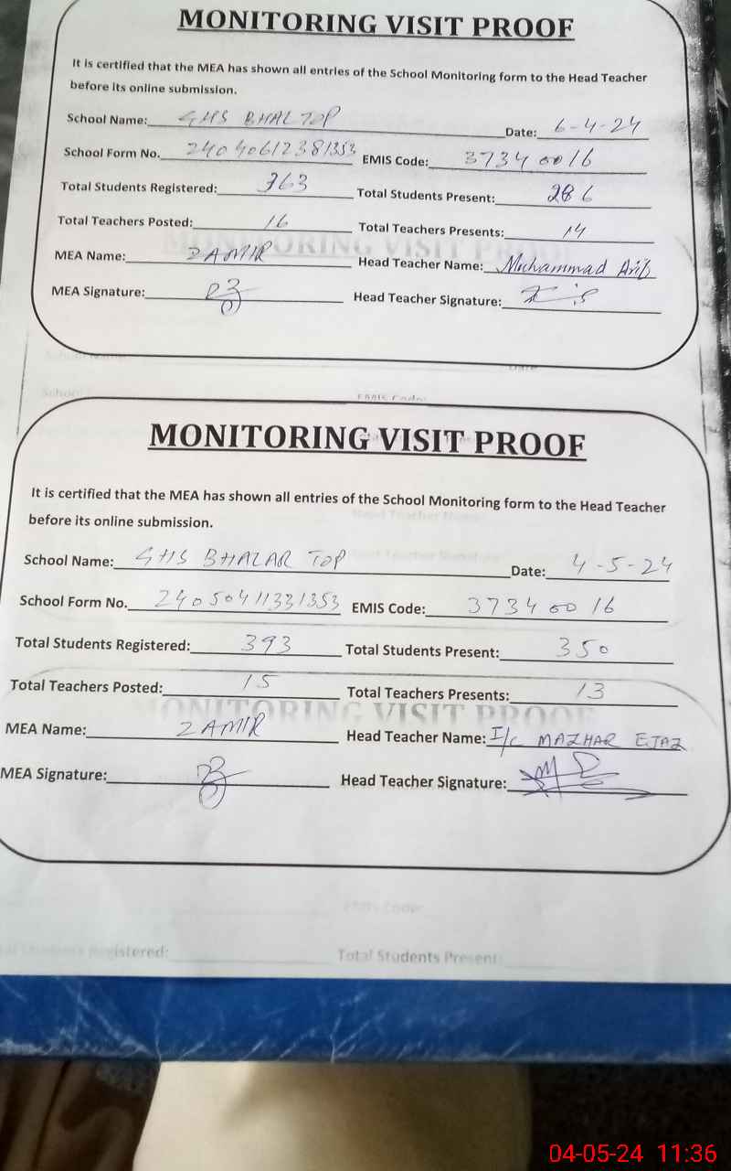 | EMIS Code: 37340016 | Name of School: GHS BHALLARTOP | |||