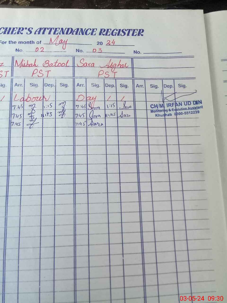 | Attendance Register | Head Teacher | MEA with School | Visit Proof |