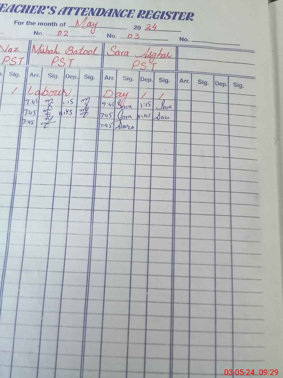 | CNIC | Full Name | Designation | R/C | Absence During Last Calender Month |