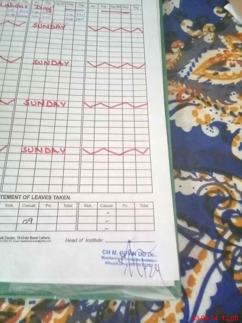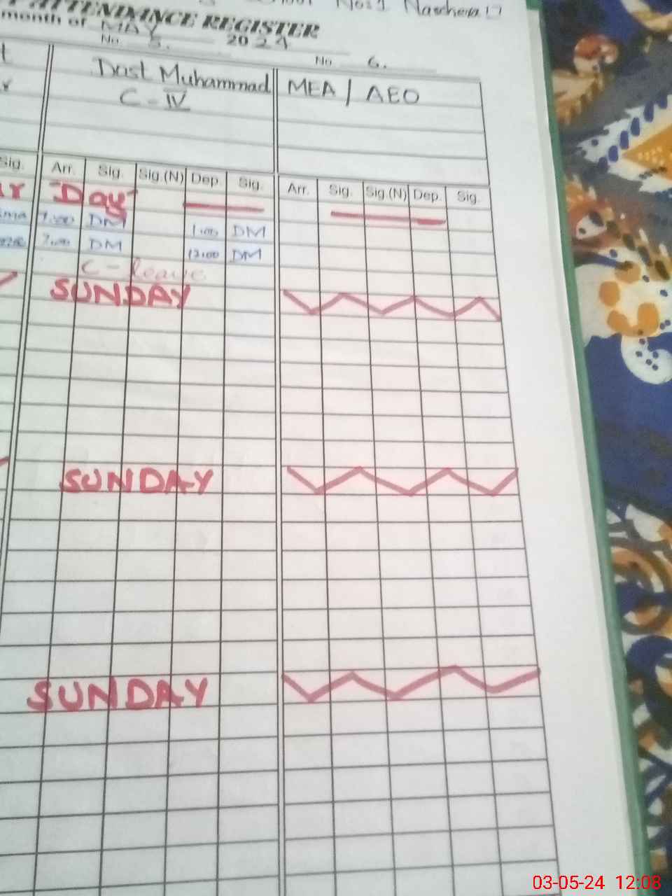 | CNIC | Full Name | Designation | R/C | Absence During Last Calender Month |