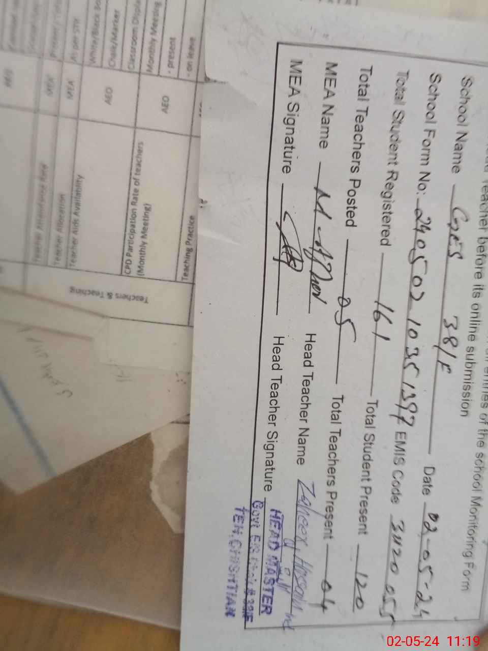 | Name: Za**** Hu**** Designation: (School Headmaster's/Headmistress's) Est Math Phone/Cell Number: 03**** |