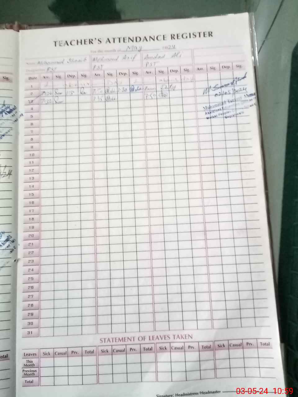 | Name: Mu**** Sh**** Designation: (School Headmaster's/Headmistress's) PST Phone/Cell Number: 03**** |