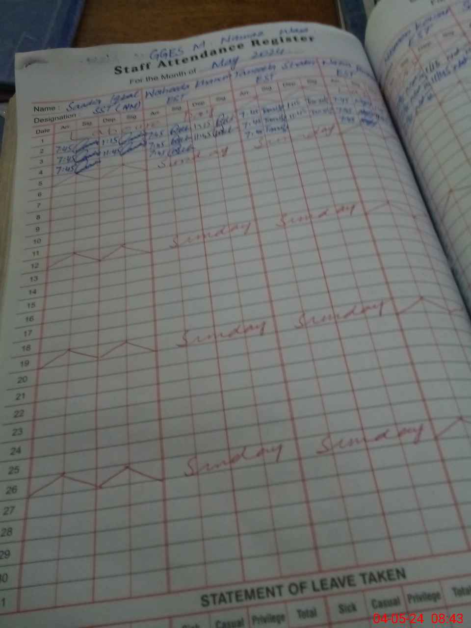 | Leave | Duty | Absent | Maternity | Medical | Ex- Pak |