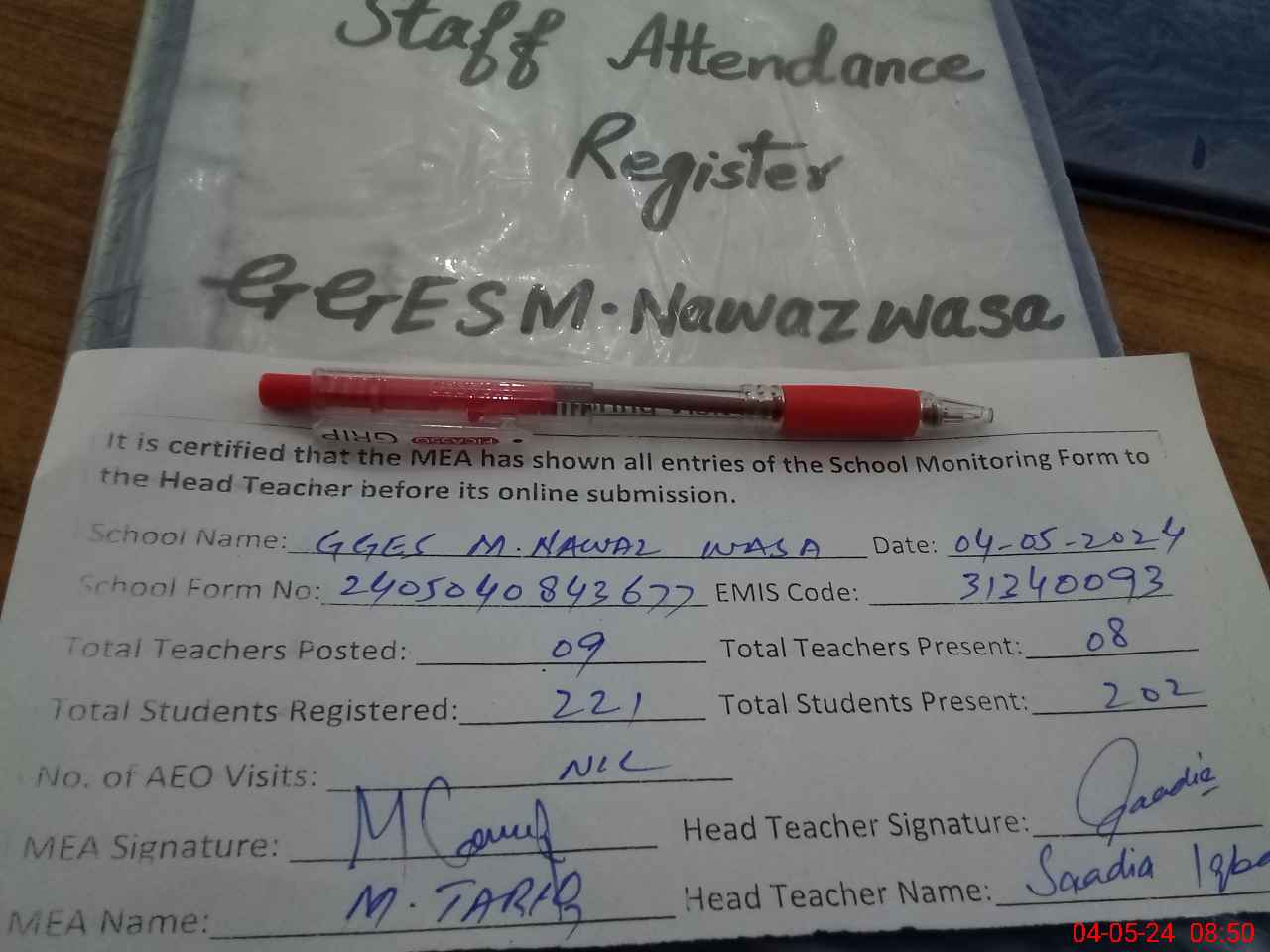 | EMIS Code: 31340093 | Name of School: GGES MUHAMMAD NAWAZ WASA | |||