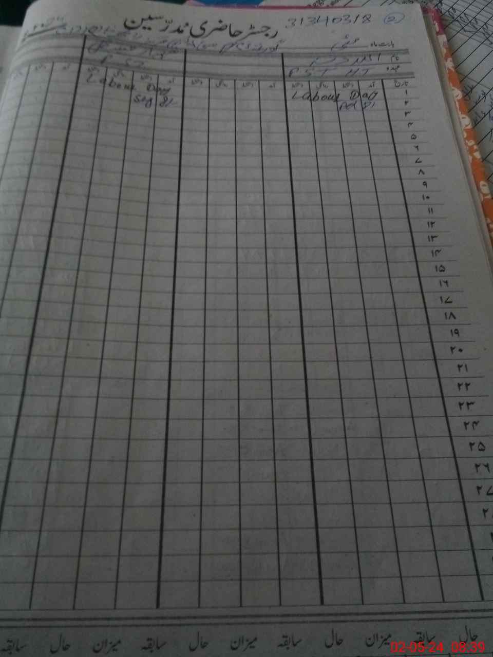 | CNIC | Full Name | Designation | R/C | Absence During Last Calender Month |