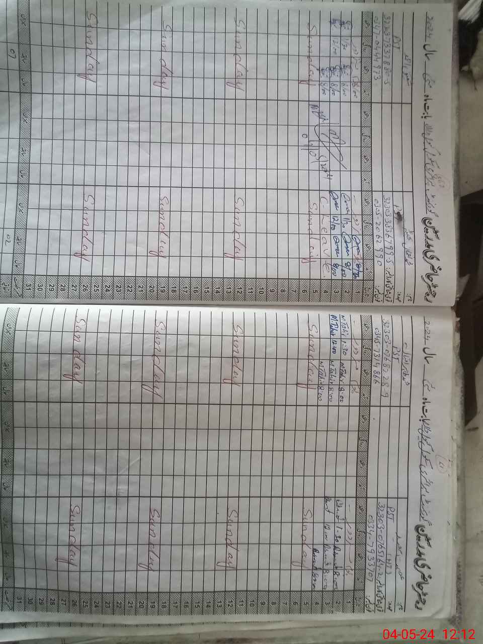 | Leave | Duty | Absent | Maternity | Medical | Ex- Pak |