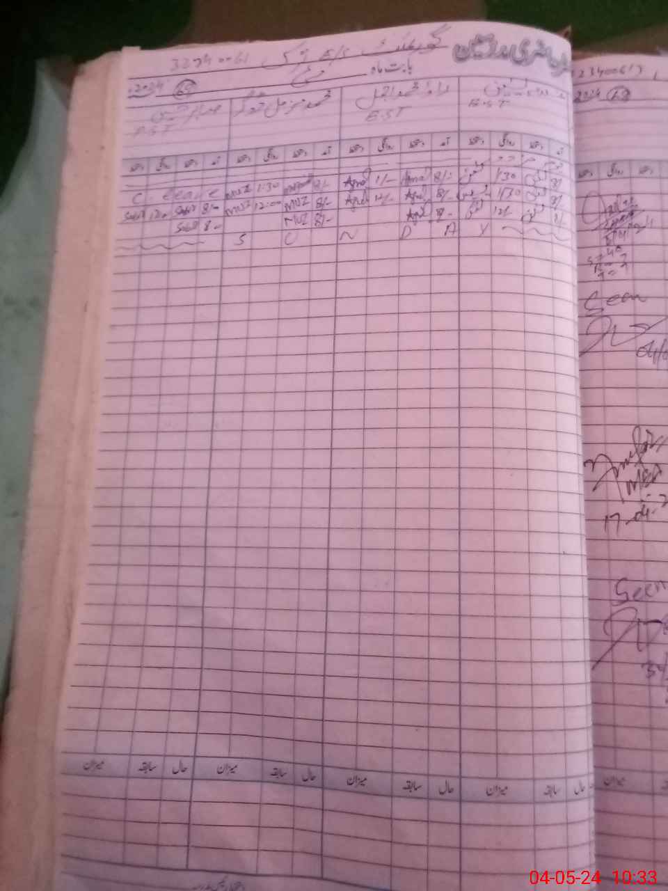 | CNIC | Full Name | Designation | R/C | Absence During Last Calender Month |