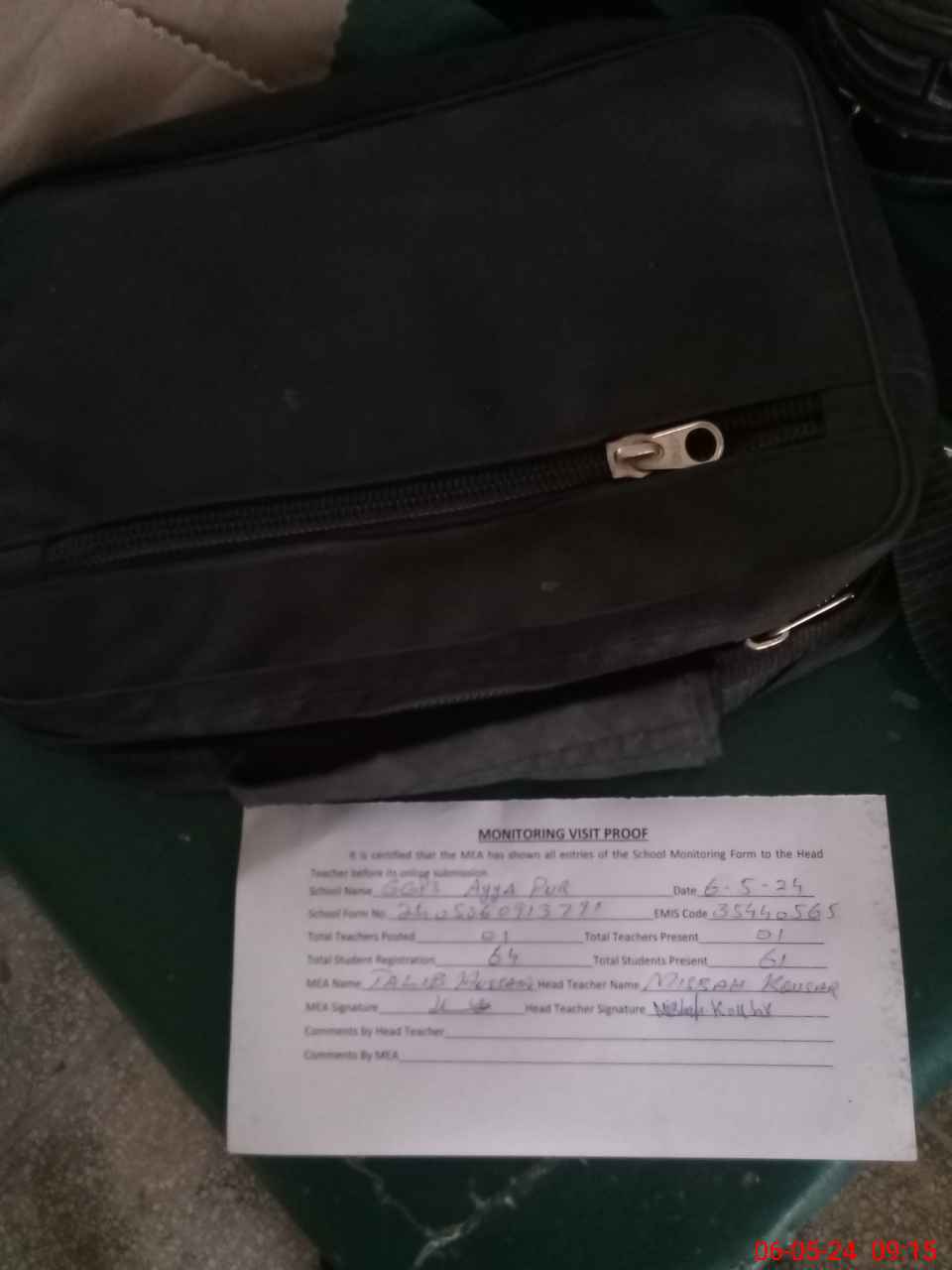 | Attendance Register | Head Teacher | MEA with School | Visit Proof |