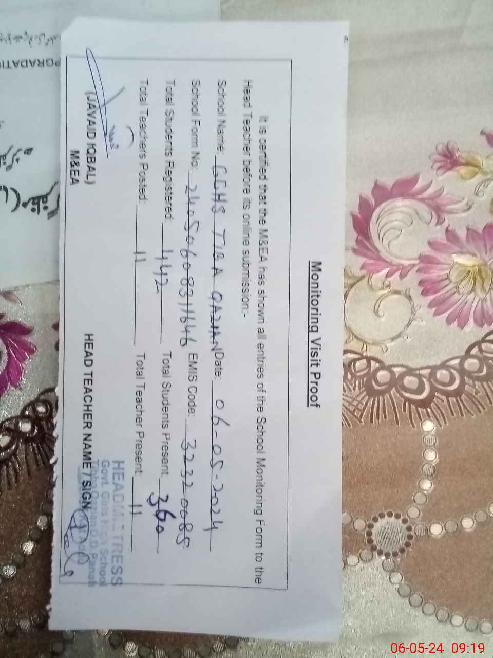 | EMIS Code: 32320085 | Name of School: GGHS TIBBA QAZIAN | |||