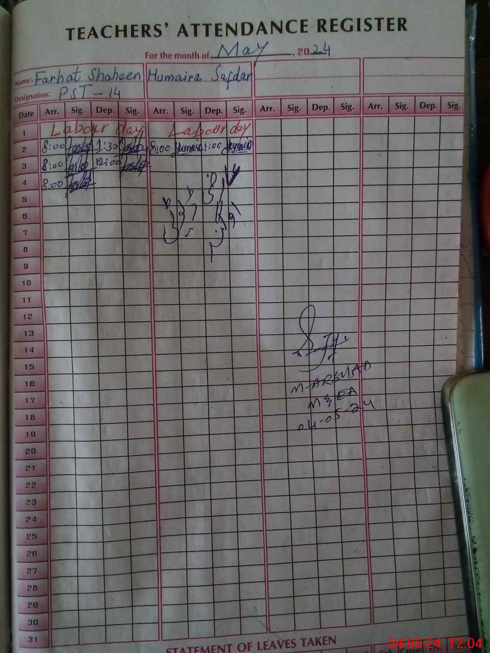 | Name: Fa**** Sh**** Designation: (School Headmaster's/Headmistress's) PST Phone/Cell Number: 03**** |