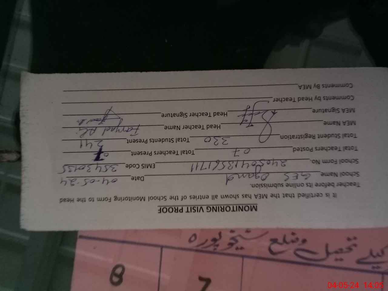 | Name: Fa**** Al**** Designation: (School Headmaster's/Headmistress's) SST Phone/Cell Number: 03**** |
