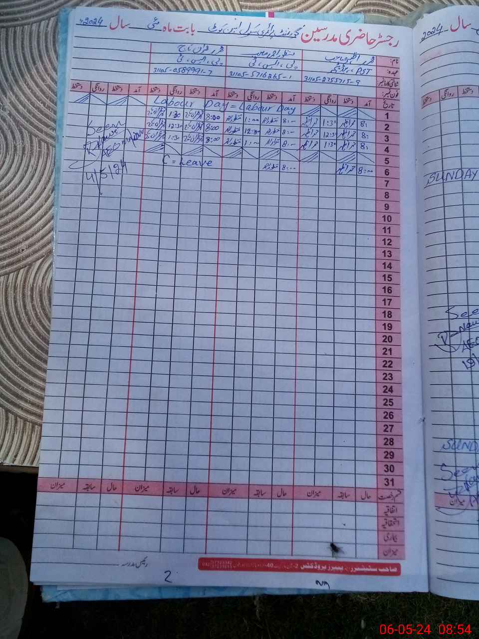 | Name: MU**** Az**** Designation: (School Headmaster's/Headmistress's) PST Phone/Cell Number: 03**** |