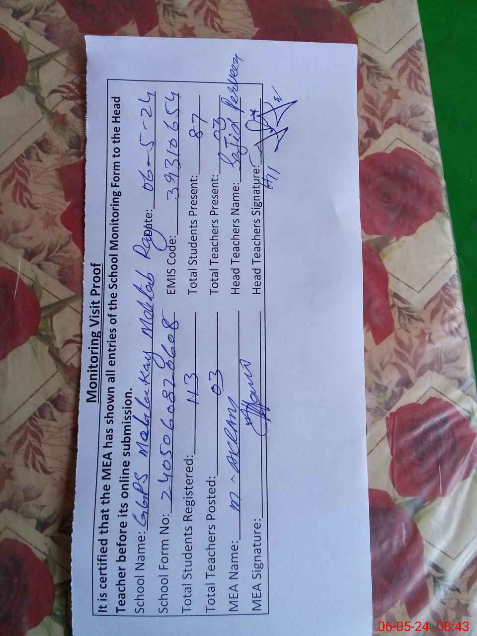 | EMIS Code: 39310654 | Name of School: GGPS MAHTAY KI MAHTAB RAI | |||