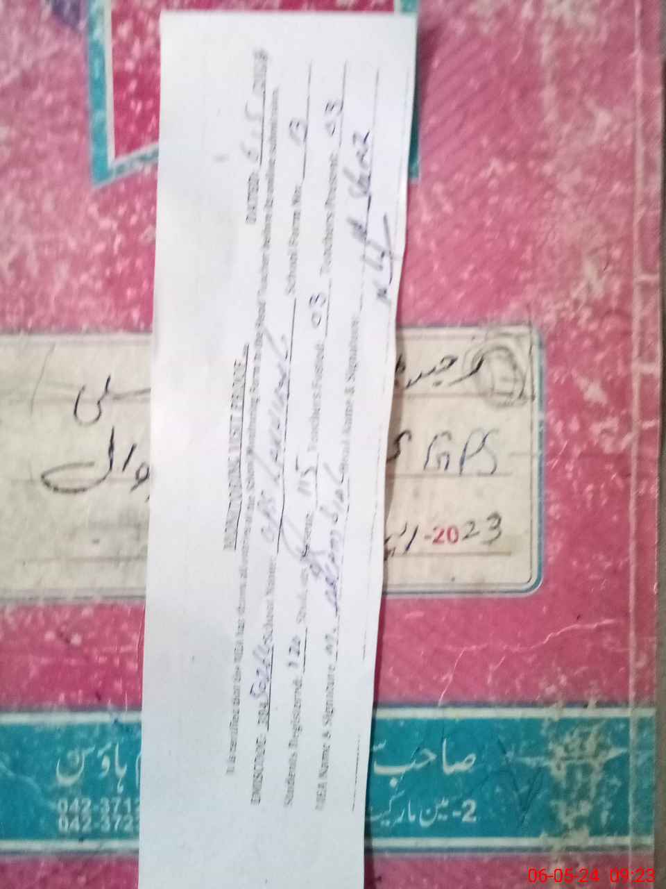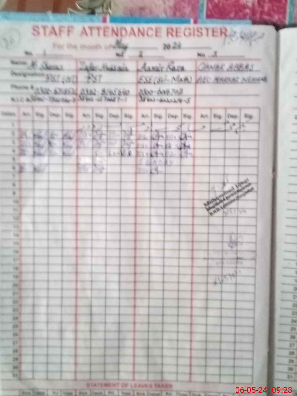 | Name: MU**** SH**** Designation: (School Headmaster's/Headmistress's) PST Phone/Cell Number: 03**** |