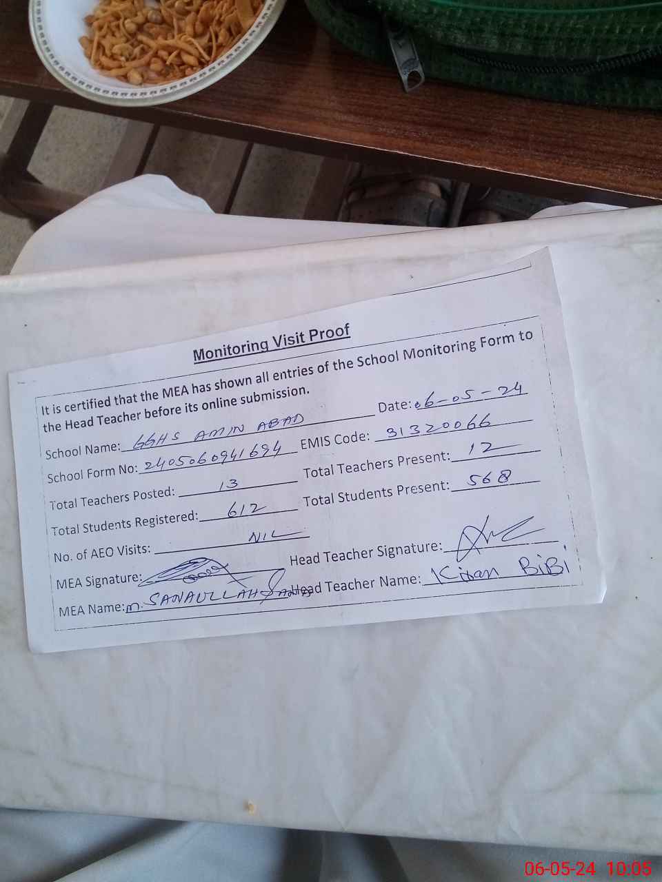 | Monitoring Date: 06-05-2024 | Start Time: 06-05-2024 09:40 AM | End Time: 06-05-2024 10:05 AM | Name of MEA: Mu**** Sa**** Ul**** Sa**** | |