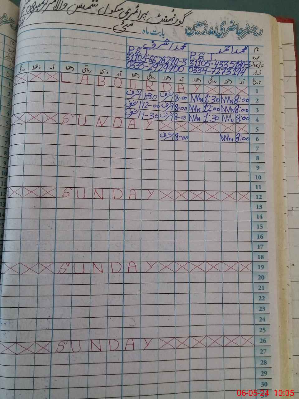 | Name: MU**** AH**** Designation: (School Headmaster's/Headmistress's) PST Phone/Cell Number: 03**** |