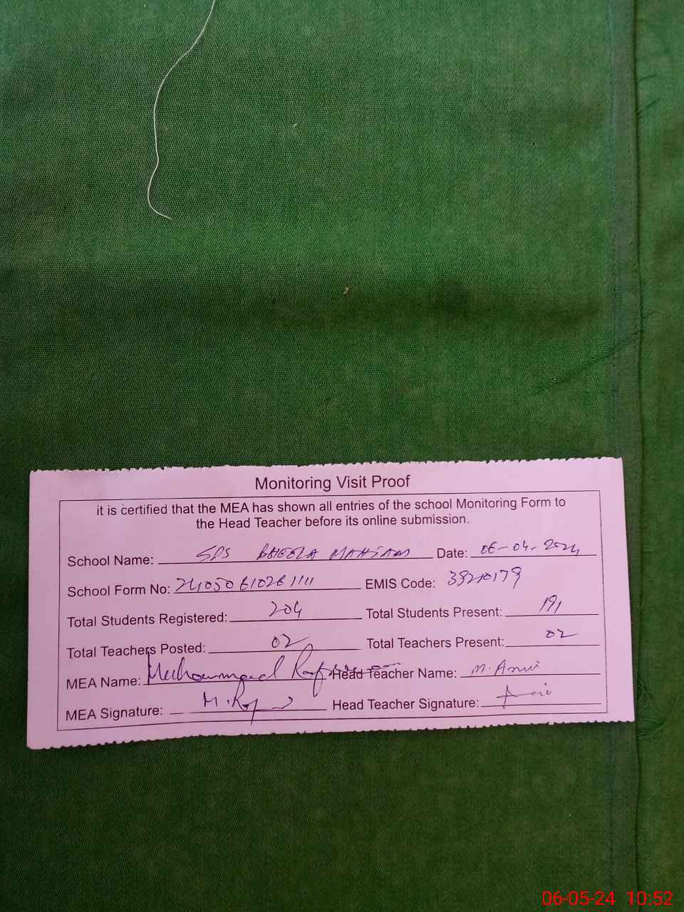 | EMIS Code: 39210179 | Name of School: GPS BHEELA MAHTAM | |||