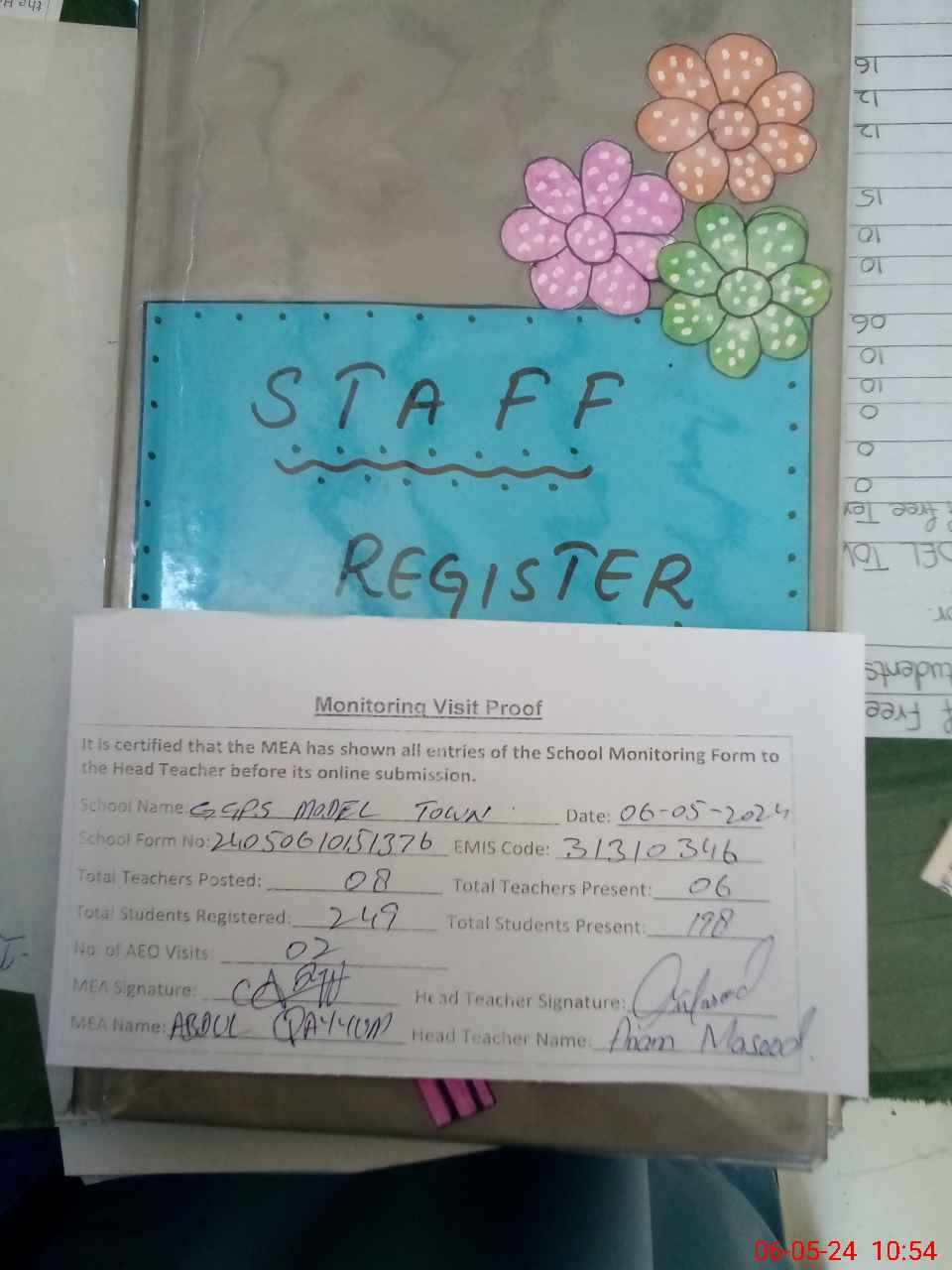| Attendance Register | Head Teacher | MEA with School | Visit Proof |