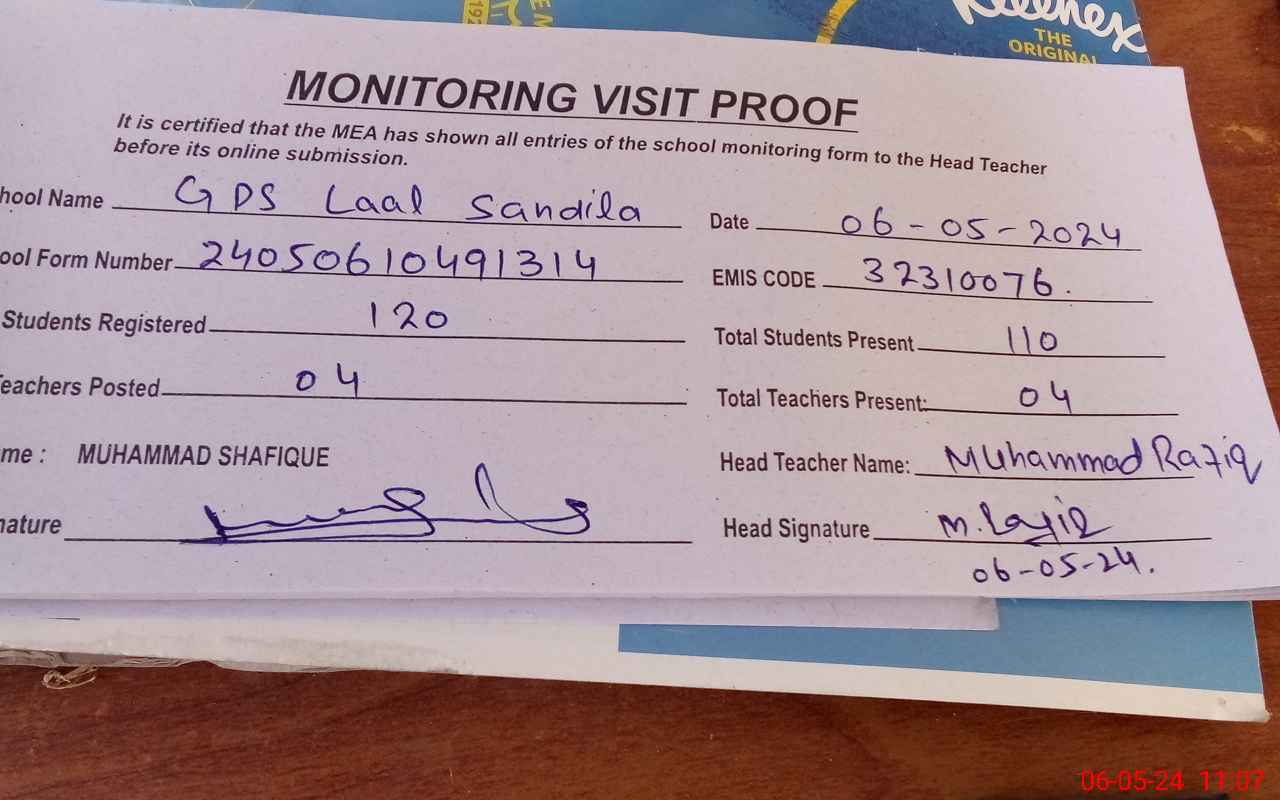 | EMIS Code: 32310076 | Name of School: GPS LAAL SANDILA | |||