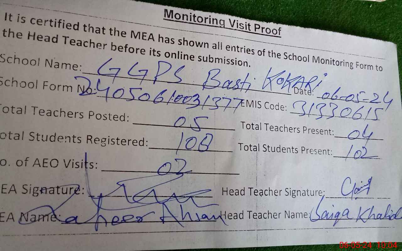 | EMIS Code: 31330615 | Name of School: GGPS BAST KOKARI | |||