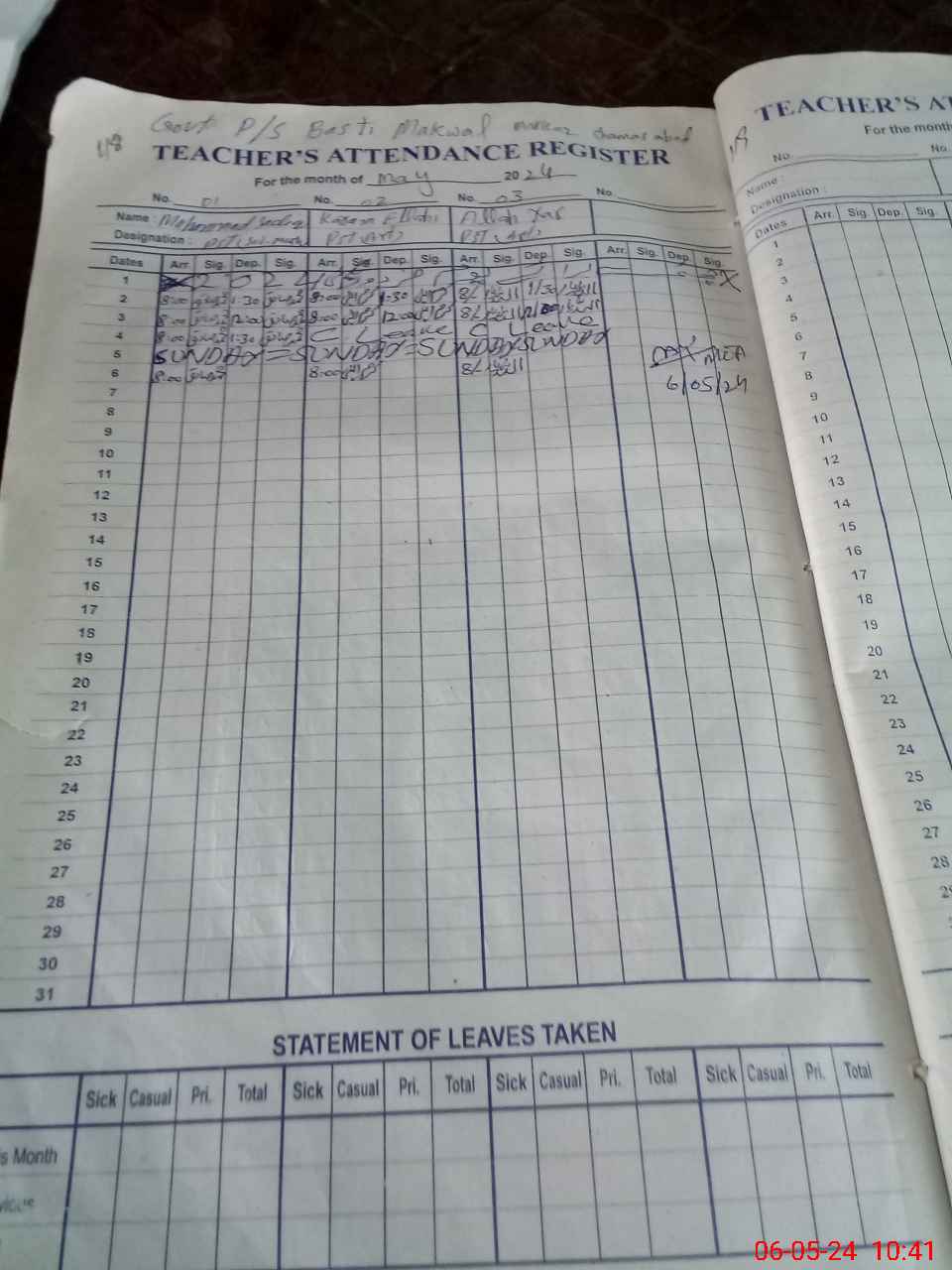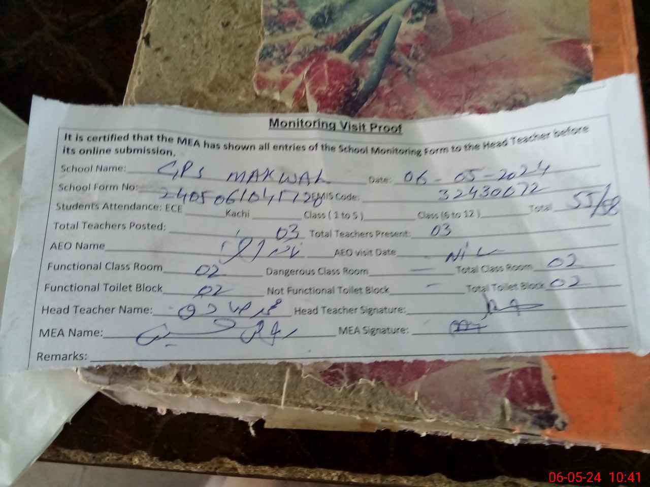 | Attendance Register | Head Teacher | MEA with School | Visit Proof |