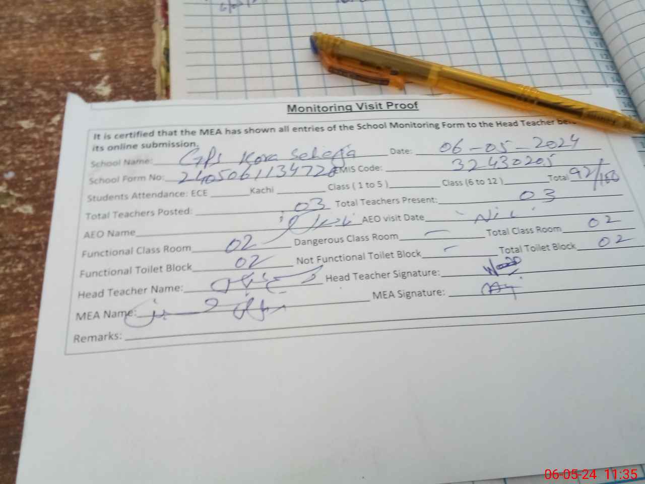 | EMIS Code: 32430205 | Name of School: GPS KORA SAHEJA | |||