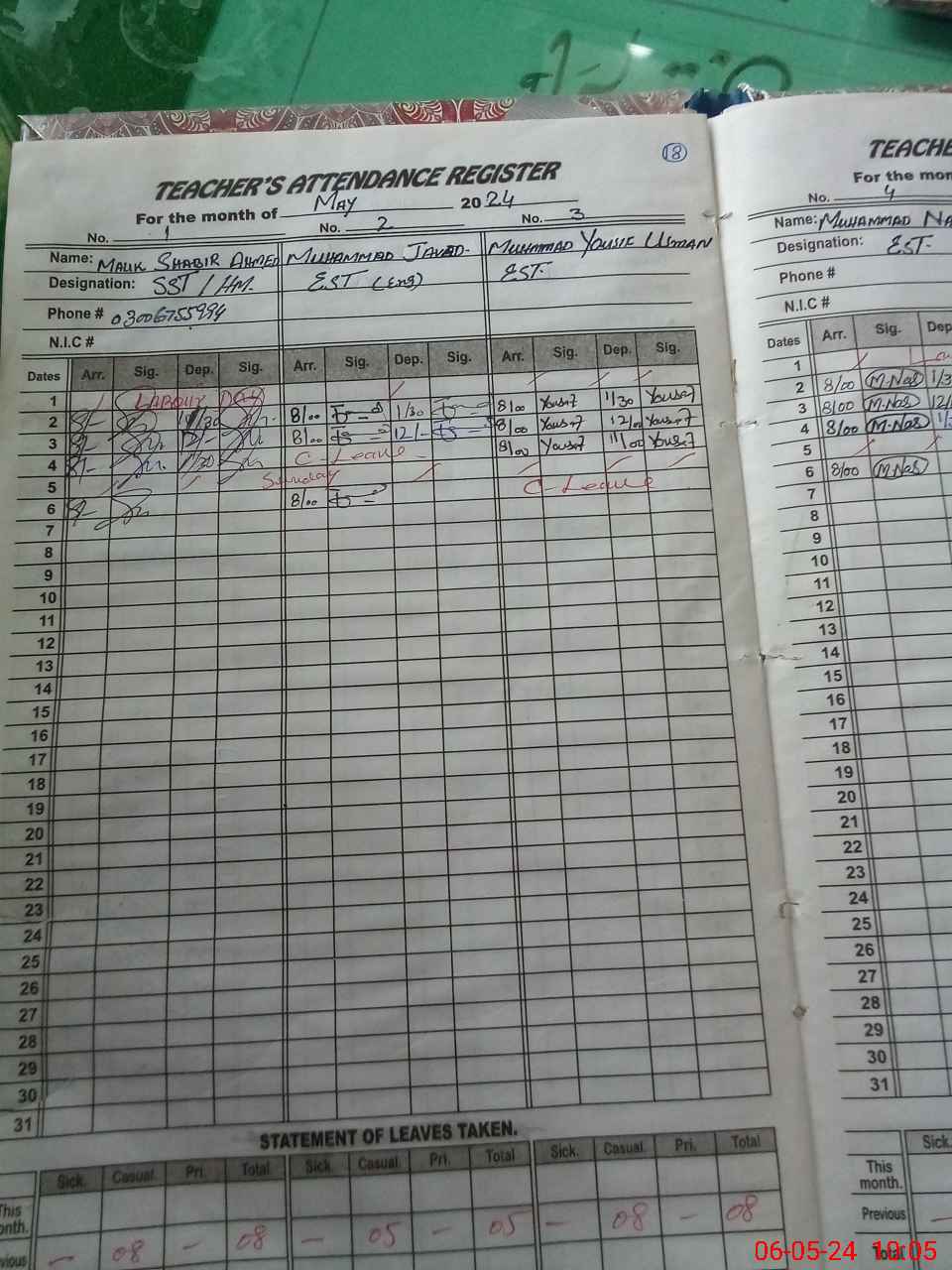 | 31**** | Ra**** Mu**** | 1 | 2 | 4 | 0 | 0 | 0 | 0 | 0 | 0 | 2 | Exam Duty | |