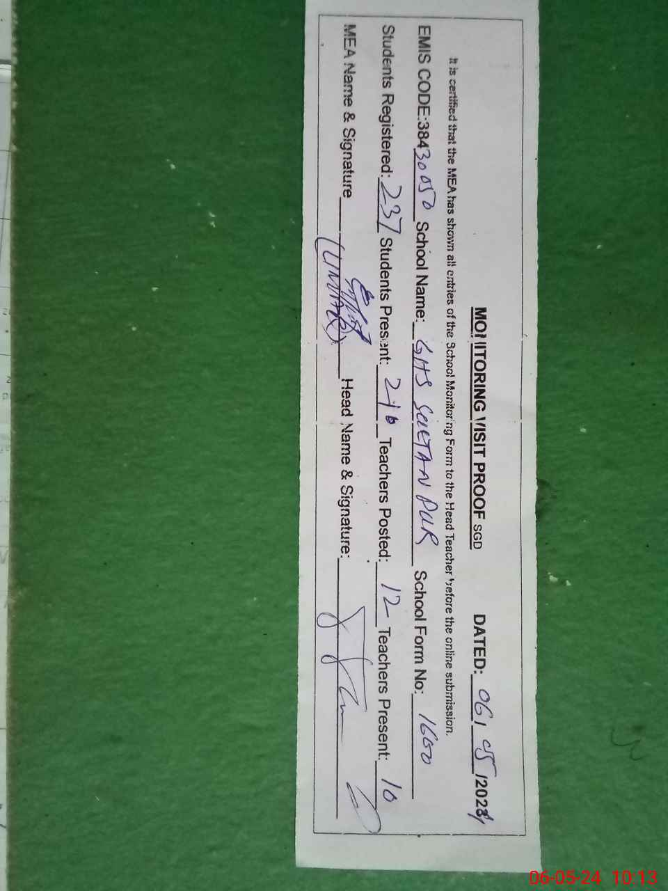 | EMIS Code: 38430050 | Name of School: GHS SULTAN PUR | |||