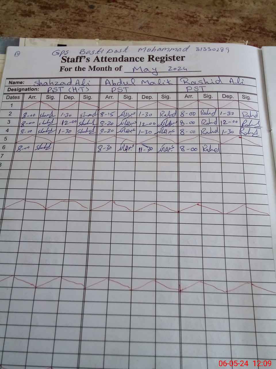 | Name: SH**** AL**** Designation: (School Headmaster's/Headmistress's) P S T Phone/Cell Number: 03**** |