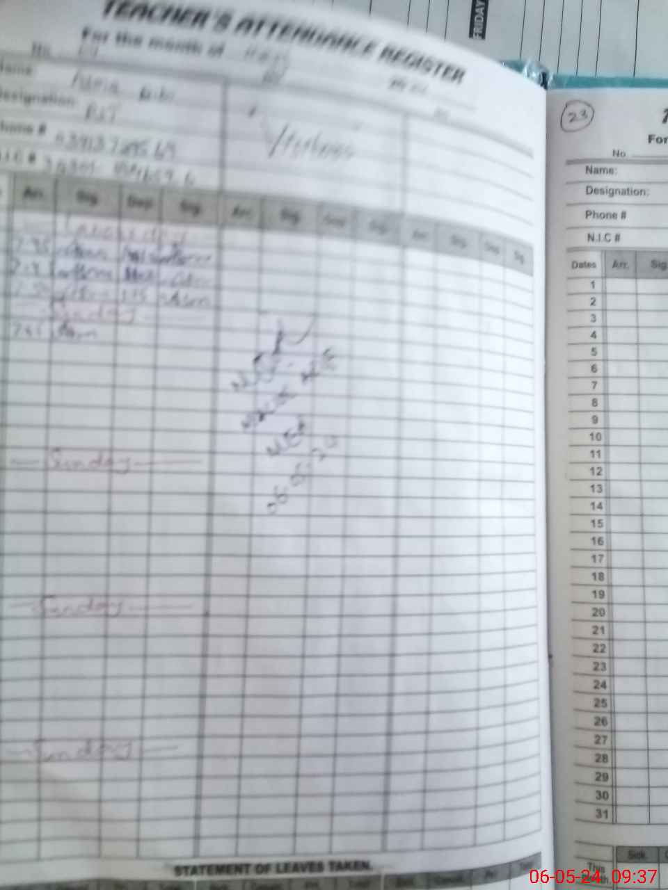 | CNIC | Full Name | Designation | R/C | Absence During Last Calender Month |