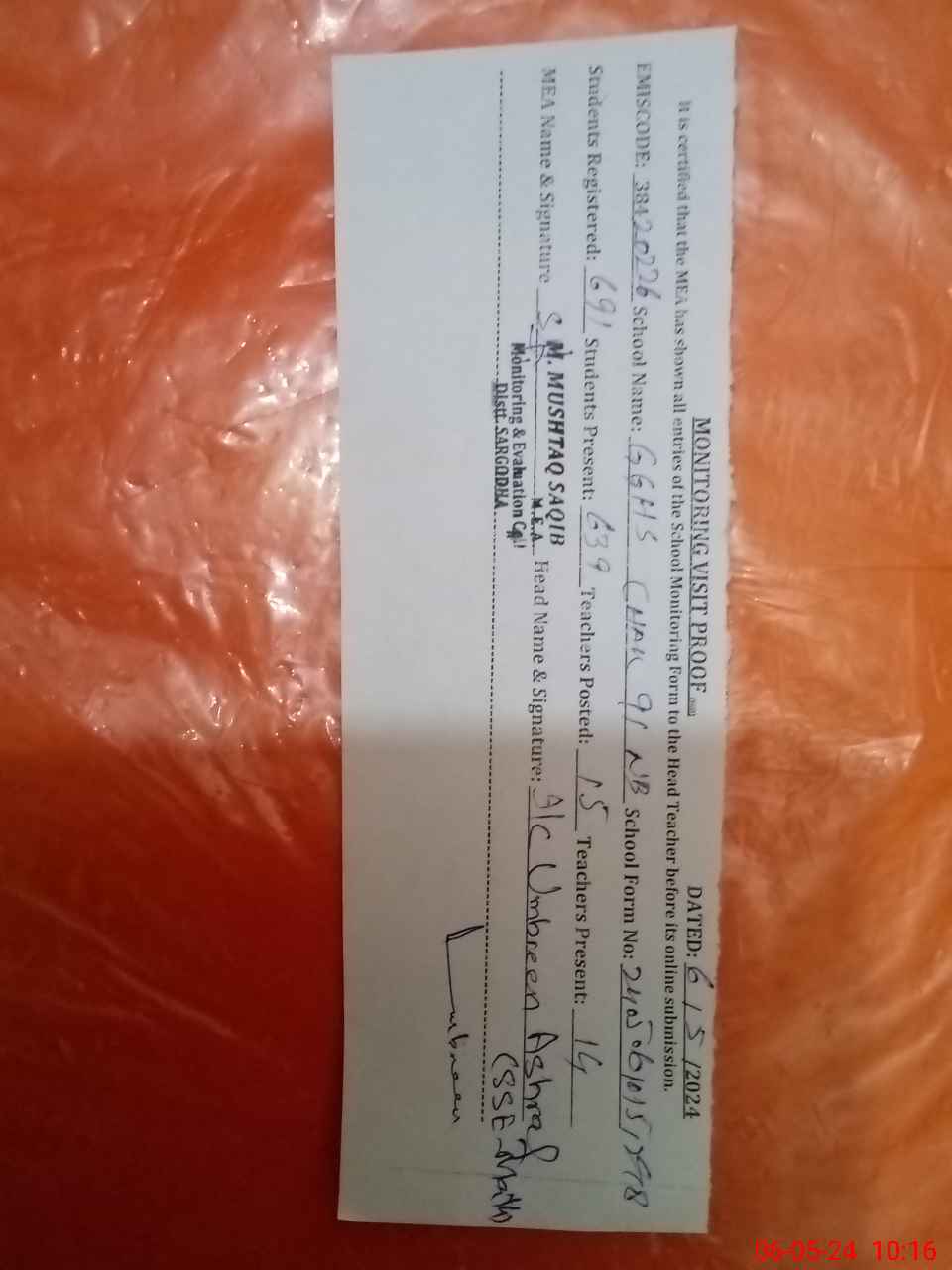 | EMIS Code: 38420226 | Name of School: GGHS CHAK NO.91 NB | |||