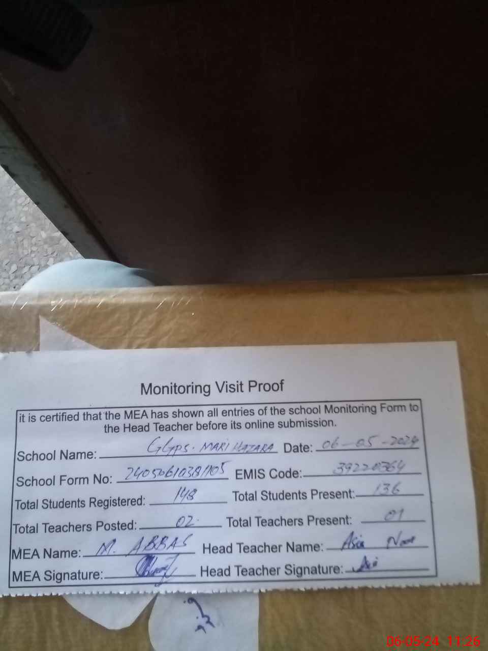 | EMIS Code: 39220364 | Name of School: GGPS MARI HAZARA | |||