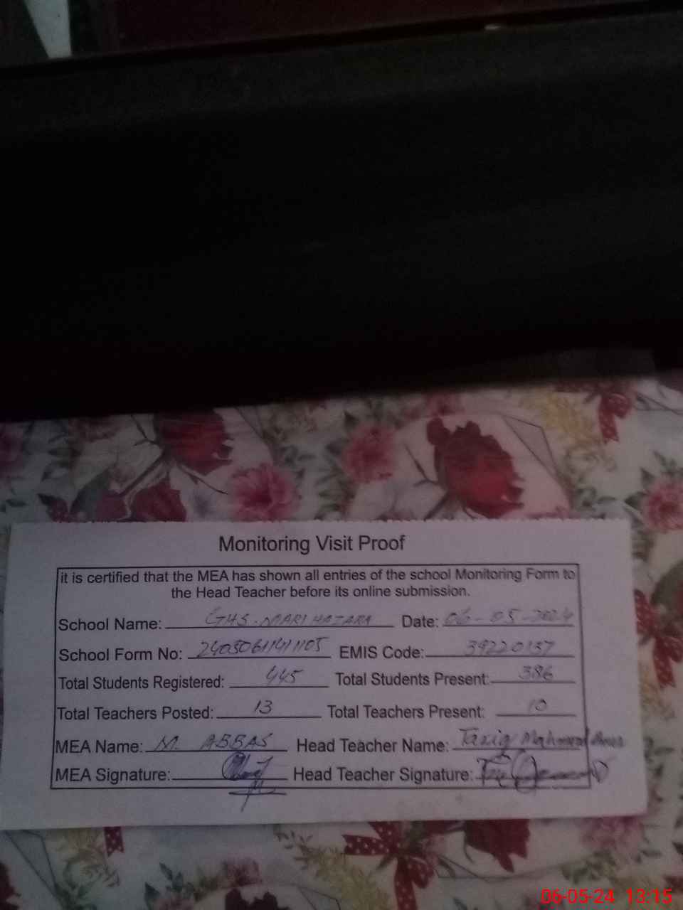 | EMIS Code: 39220137 | Name of School: GHS MARI HAZARA | |||
