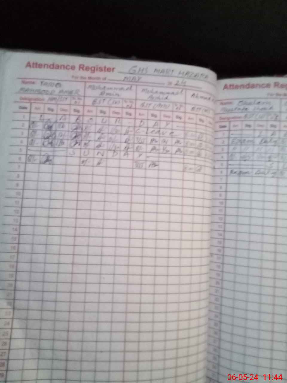 | 36**** | Gh**** Mu**** Sh**** | Regular | 0 | 24 | 0 | 0 | 0 | 0 | 0 | 0 | 0 | Exam Duty | |