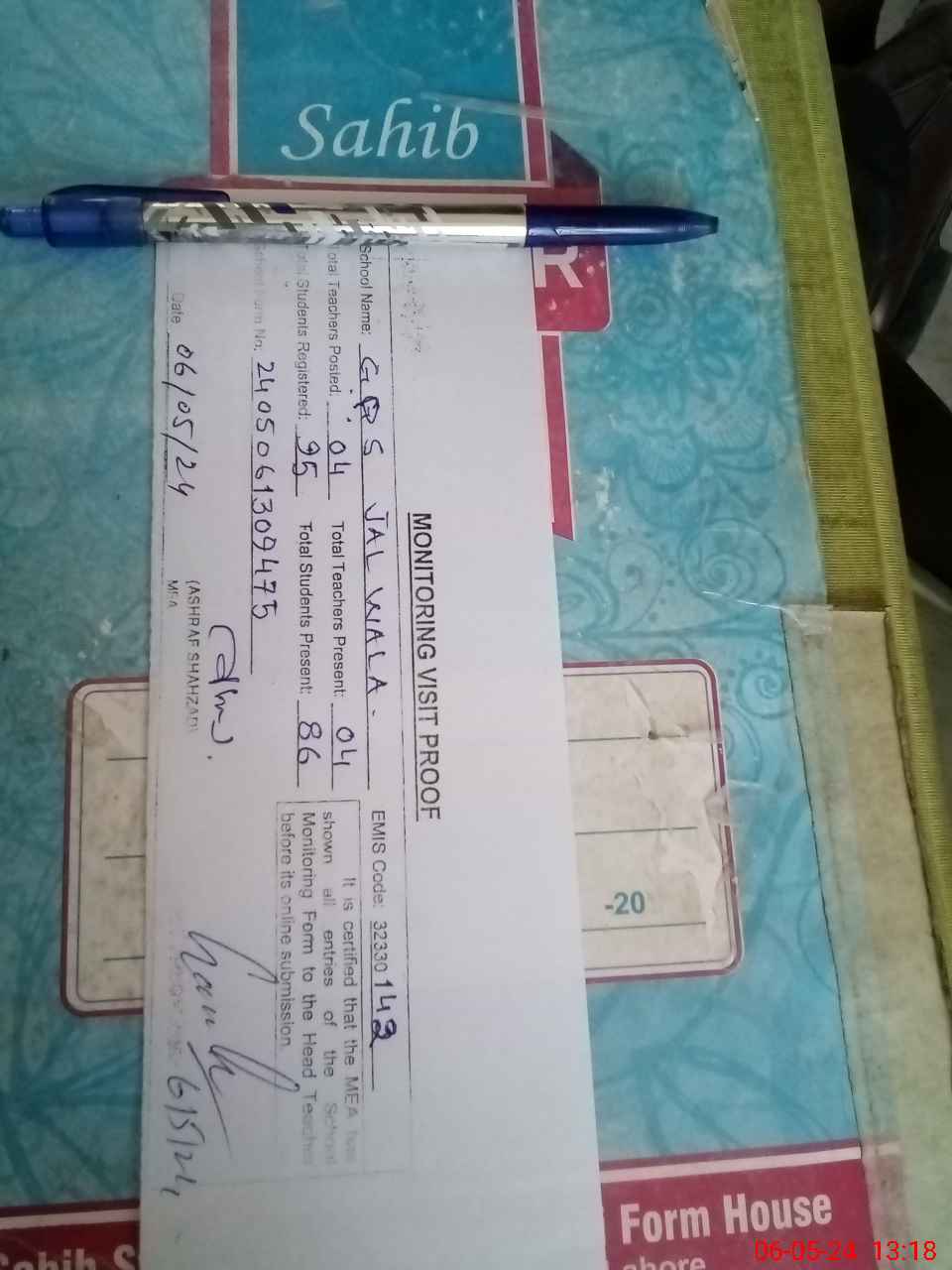 | EMIS Code: 32330142 | Name of School: GPS JAL WALA | |||