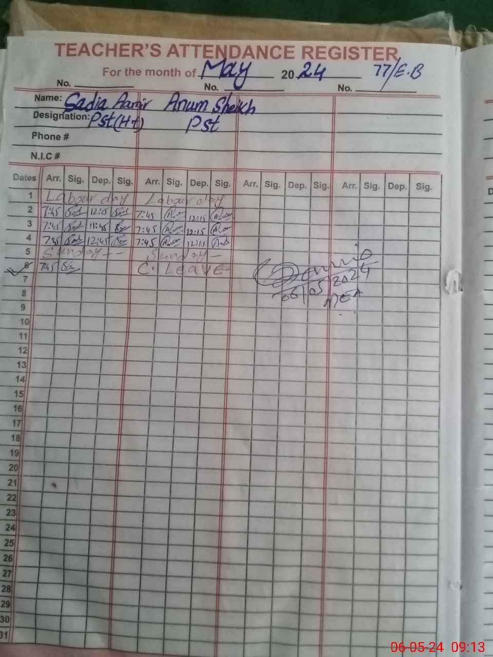 | Name: SA**** AA**** Designation: (School Headmaster's/Headmistress's) PST Phone/Cell Number: 03**** |
