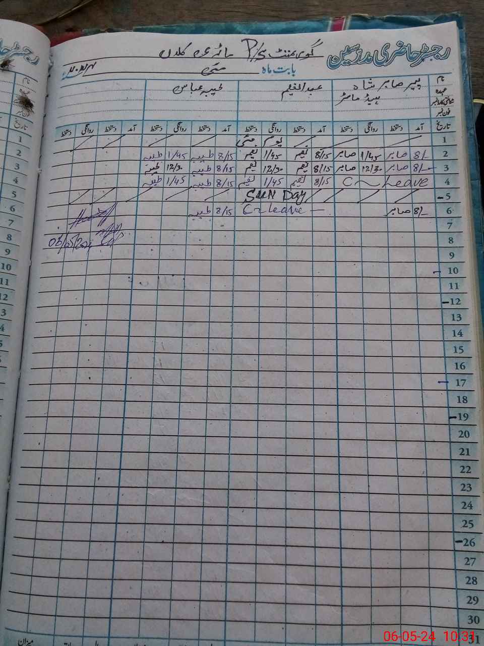 | CNIC | Full Name | Designation | R/C | Absence During Last Calender Month |