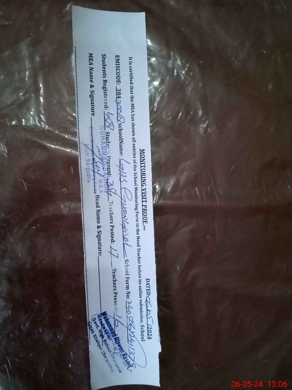 | EMIS Code: 38430018 | Name of School: GHS GHANGWAL | |||