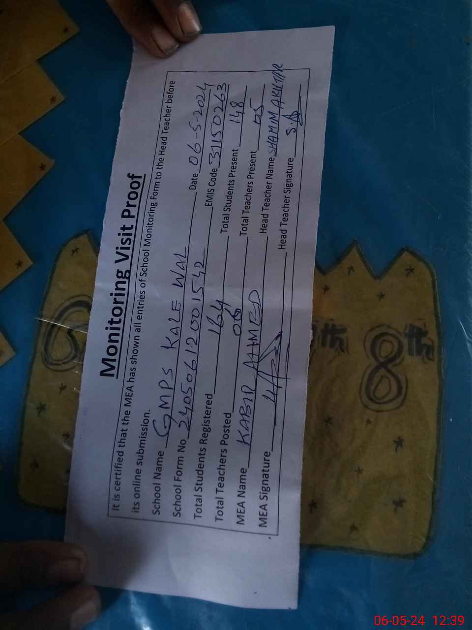 | EMIS Code: 31150263 | Name of School: GMPS KALE WAL | |||
