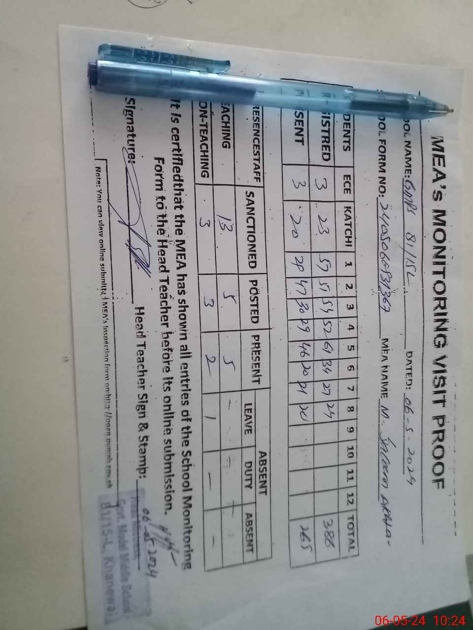 | Certified that this School was Inspected by the Undersigned MEA/DMO Today and the Information Stated Above is as Per Record. | |||||