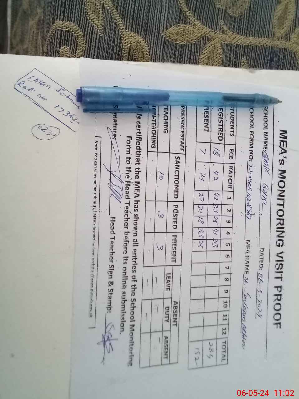 | Certified that this School was Inspected by the Undersigned MEA/DMO Today and the Information Stated Above is as Per Record. | |||||