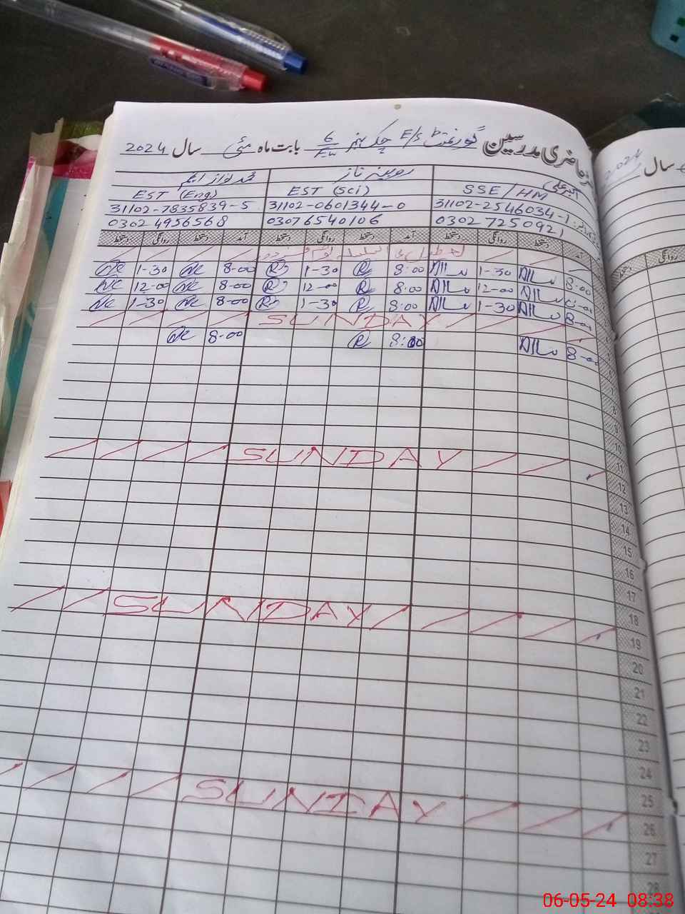 | CNIC | Full Name | Designation | R/C | Absence During Last Calender Month |