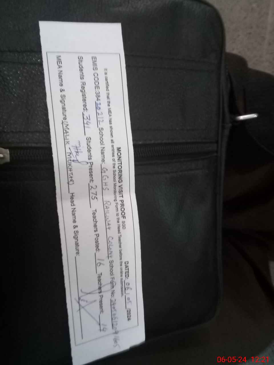 | Name: Fa**** Ra**** Designation: (School Headmaster's/Headmistress's) H. M Phone/Cell Number: 03**** |