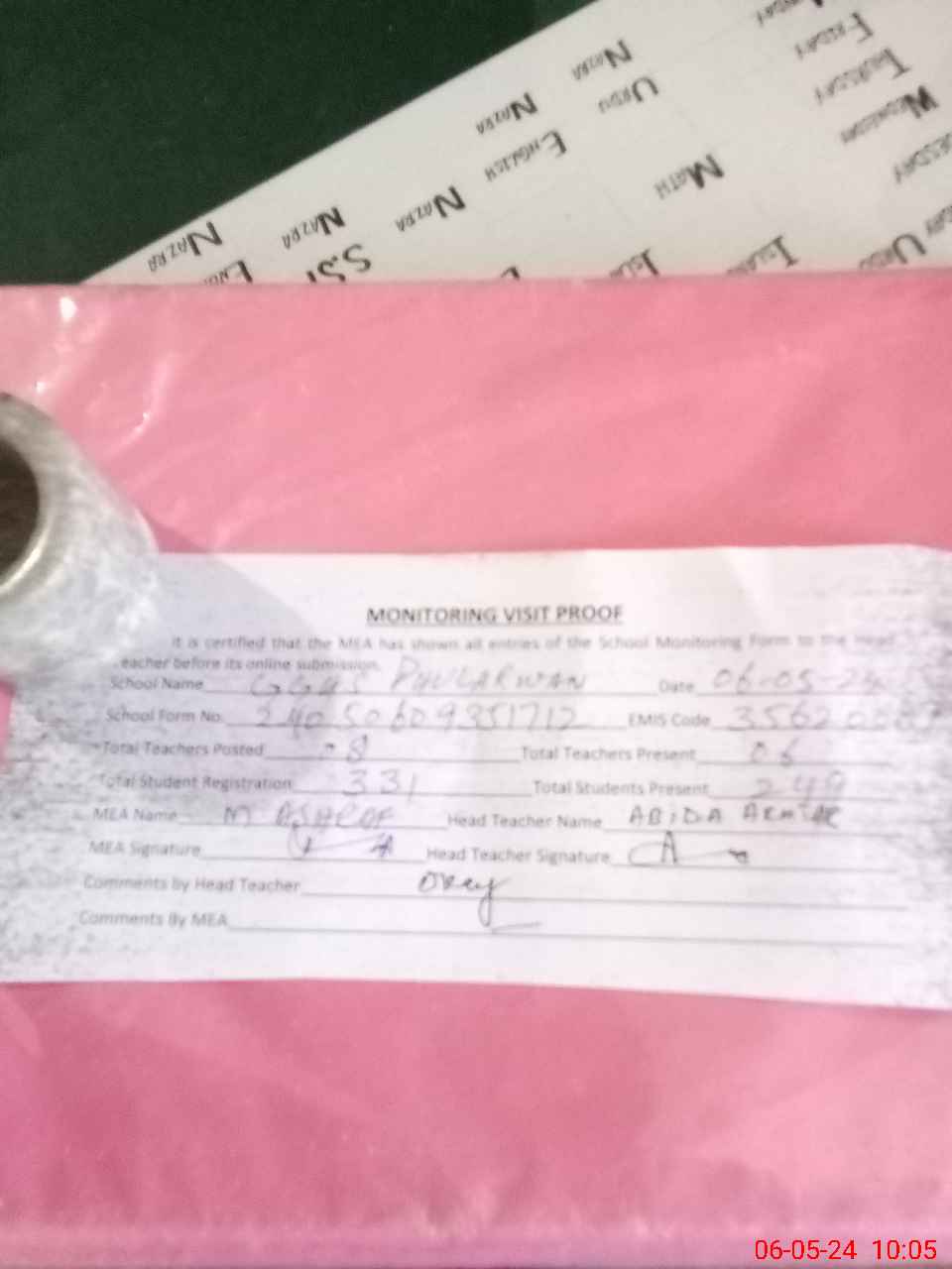 | Certified that this School was Inspected by the Undersigned MEA/DMO Today and the Information Stated Above is as Per Record. | |||||