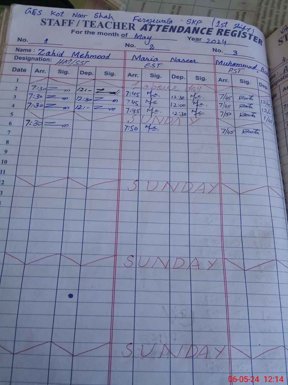 | CNIC | Full Name | Designation | R/C | Absence During Last Calender Month |
