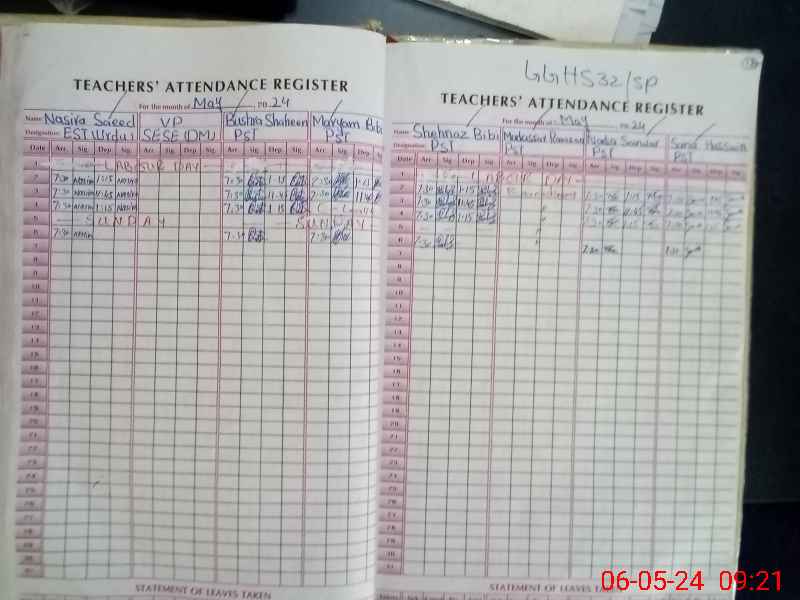 | 36**** | Aq**** Ya**** | Contract | 0 | 26 | 0 | 0 | 0 | 0 | 0 | 0 | 0 | Exam Duty | |