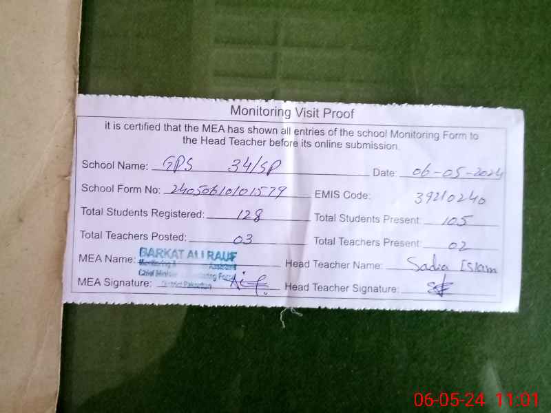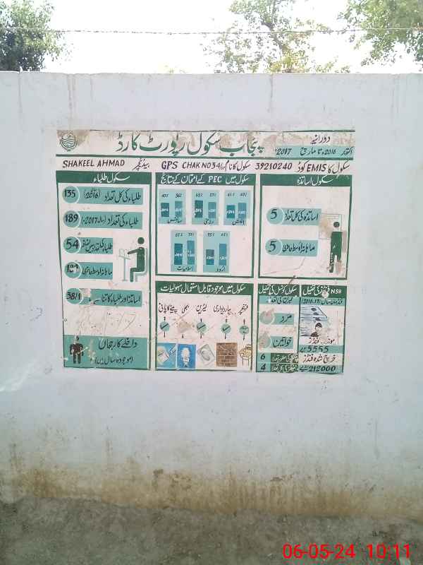 | EMIS Code: 39210240 | Name of School: GPS CHAK NO. 34 SP | |||